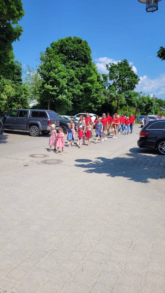 Auch beim Festzug am Montag 14 Uhr waren wir vertreten. Hier hatten wir die Möglichkeit unser neues Logo und unsere neuen Polo-Shirts zu zeigen. Unsere Kinder dürfen natürlich bei so einem Ereignis nicht fehlen. Sie liefen tapfer voran präsentierten somit unseren Verein.