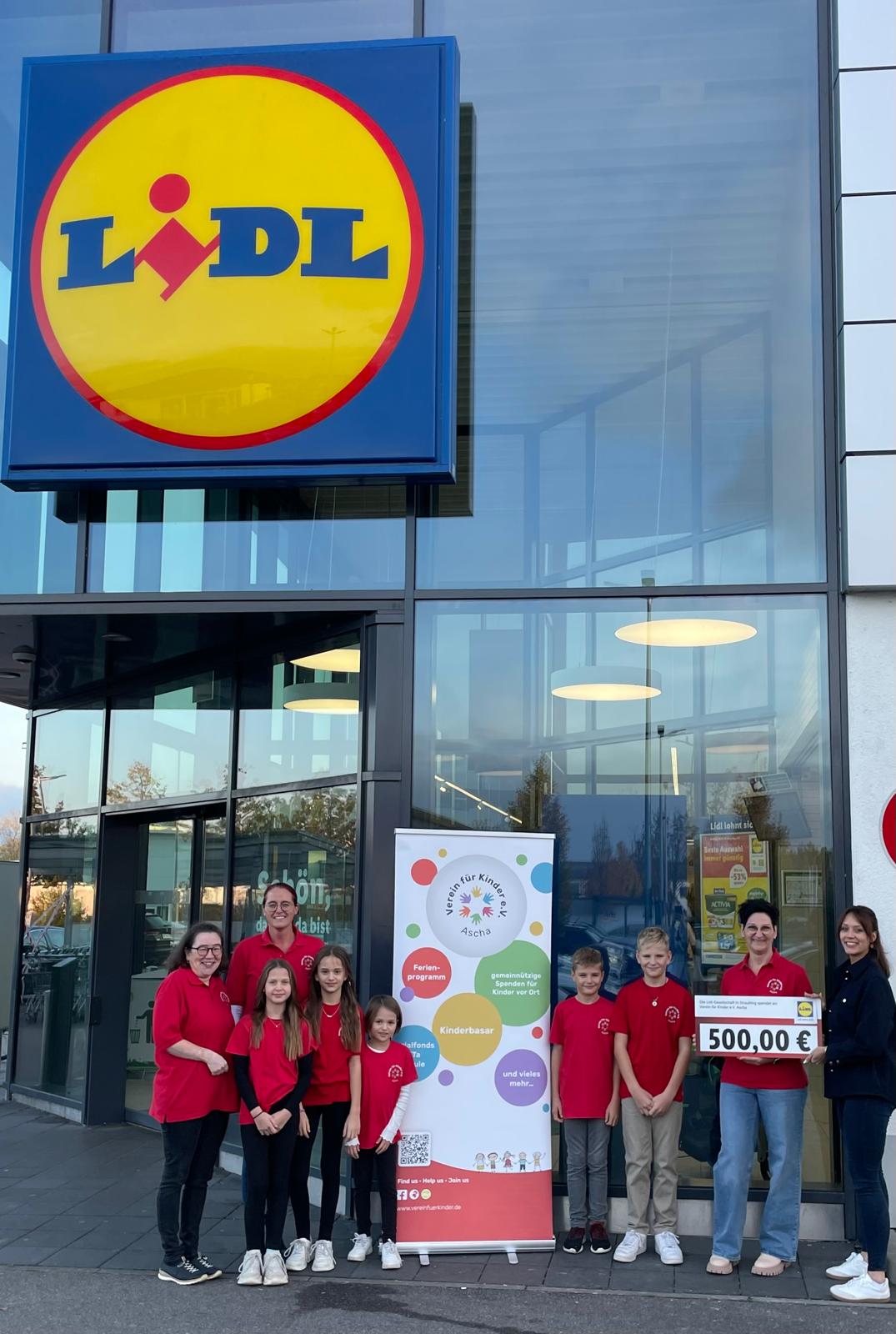 Am Mittwochnachmittag lud Anne Ratajak, Vertrauensperson bei Lidl den Verein für Kinder eV. aus Ascha nach Straubing in die Lidl – Filiale nach Ittling ein. Dabei überreicht Sie dem Verein einen symbolischen Scheck im Wert von 500 Euro.