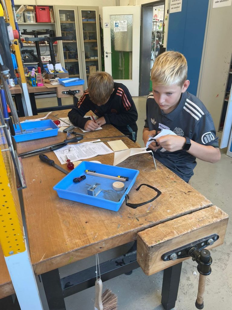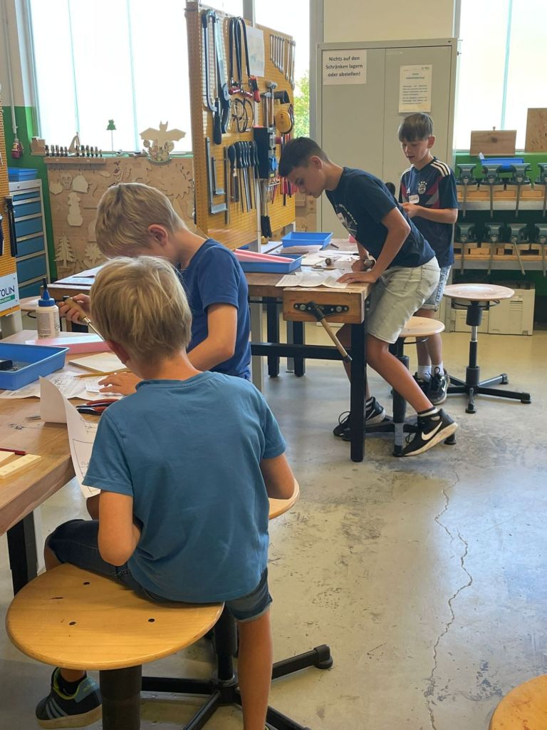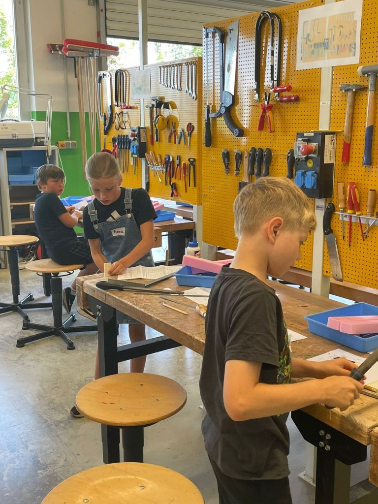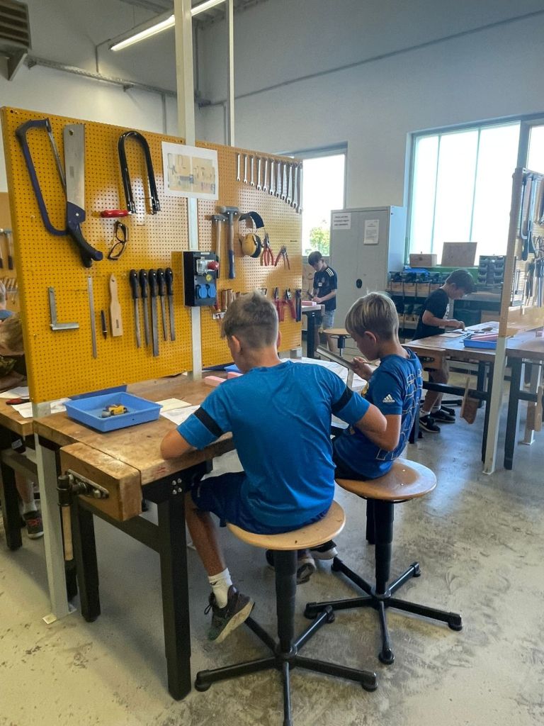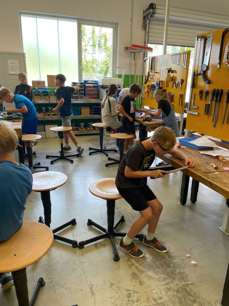 Mit voller Konzentration und viel Geschick machten sich alle ans Werk. Das Schleifen, Bohren, Schneiden und Bemalen der Boote sorgte für leuchtende Augen und begeisterte die technikaffinen Mädchen und Jungen gleichermaßen. 🔨🪚
