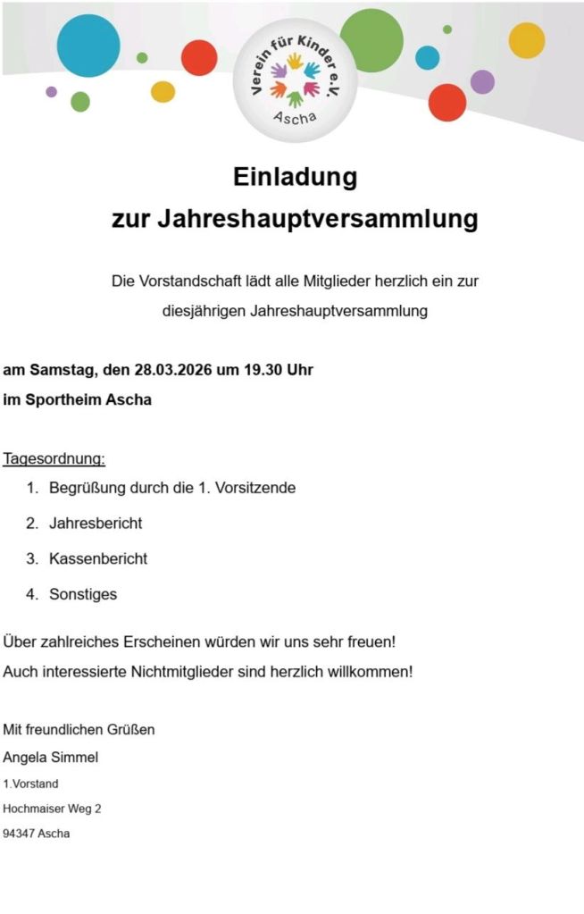 Am Samstag, den 28. März 2026 laden wir euch herzlich zu unserer diesjährigen Jahreshauptversammlung ein. ❤️