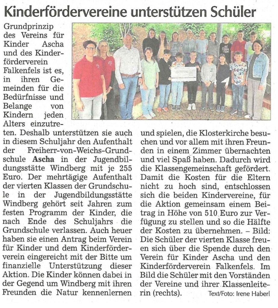 Mit 200€ vom Verein für Kinder e.V., 200€ vom Kinderförderverein Falkenfels und 104€ vom Elternbeirat konnten die Kosten von 504€ gedeckt werden. 🎉